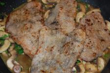 adaugati iar scaloppinele in tigaie, doar cateva secunde, cat sa le stropiti cu sosul de ciuperci.