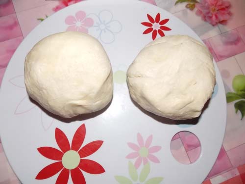 Drojdia se amesteca impreuna cu zaharul si 100 ml apa calda. cand a dospit, se amesteca cu faina, sarea, uleiul, 300 ml apa calda si se lasa la crescut.